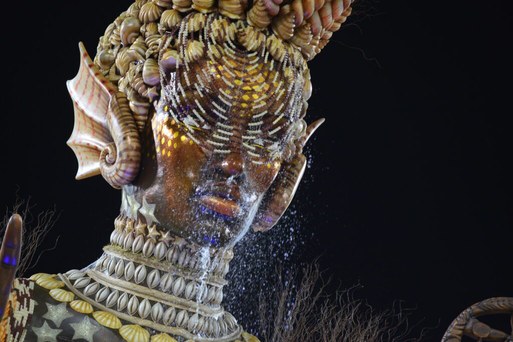 Encerrando a primeira noite de desfiles, a Barroca celebrou Oxum, orixá das águas doces que representa fertilidade e amor. Foram alas de muito brilho e referências aquáticas.