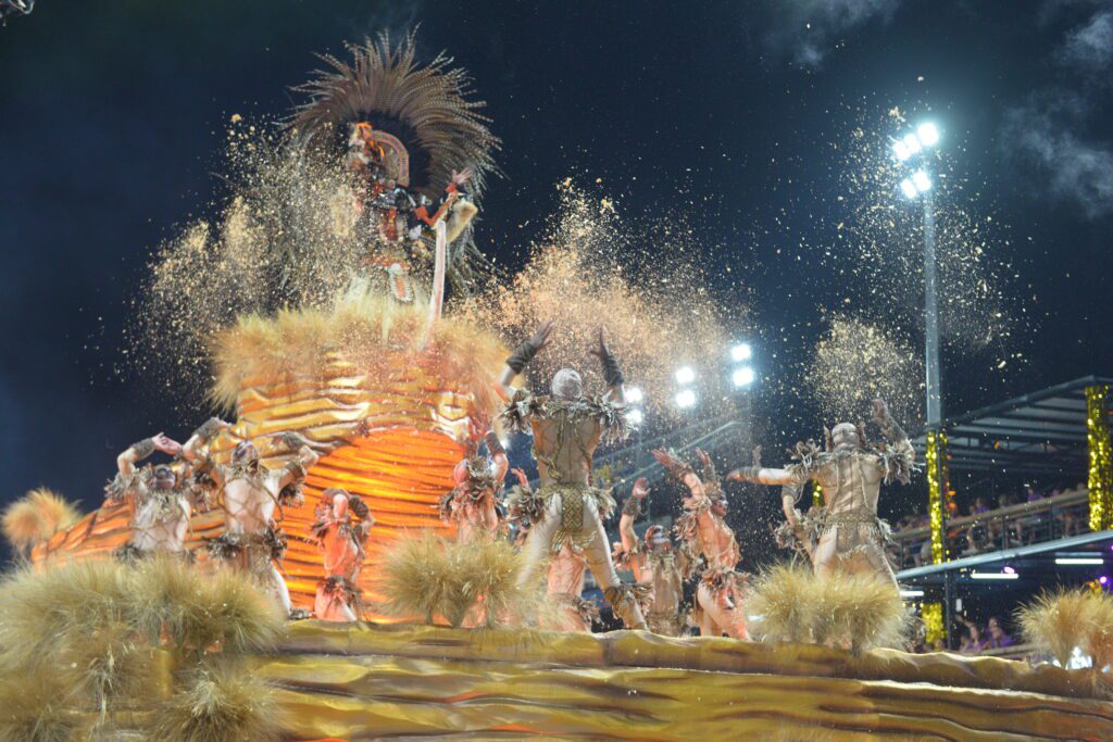 A Dragões trouxe a força da floresta para a avenida, contando a história das Icamiabas, uma aldeia de mulheres indígenas às margens do Rio Amazonas.